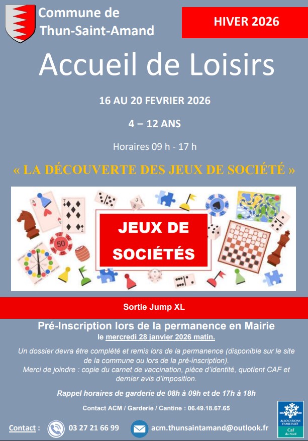La commune de Thun-Saint-Amand organise son accueil de loisirs sur le thème : « La découverte des jeux de société » !
